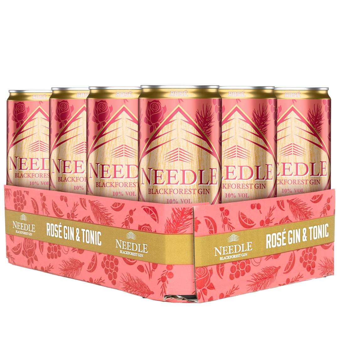 All you need is Needle Gin Rosé, perfekt gemixt mit Tonic, für besondere Momente mit diesem Tray (12 Dosen)!
